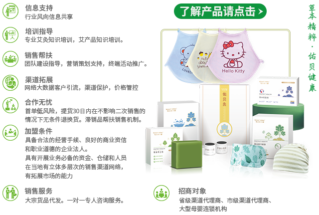 艾草制品是大健康行業(yè)中一顆璀璨的明珠,是中醫(yī)文化不可或缺的重要組成部分。南陽仙草健康集團立足艾草種植,艾絨原材料加工、生產(chǎn),艾制品研發(fā)OEM定制、經(jīng)營,艾灸器具研發(fā)與一身的全供應(yīng)鏈集團化公司;旗下自有品牌沉淀、厚積薄發(fā),用料上乘,工藝先進,品質(zhì)恒定,對用戶的健康負(fù)責(zé),對客戶產(chǎn)品負(fù)責(zé)的態(tài)度受到業(yè)內(nèi)一致好評!目前國內(nèi)市場上亂像嚴(yán)重,價格混亂,產(chǎn)品以次充好,產(chǎn)品質(zhì)星參差不齊,行業(yè)標(biāo)準(zhǔn)模糊不清,客戶服務(wù)不到位,經(jīng)銷商產(chǎn)品單一,無行業(yè)形象品牌等諸多行業(yè)市場問題,作為行業(yè)龍頭企業(yè),公司針對目前母嬰行業(yè)推出一款高端艾制品品牌一佑貝草本。